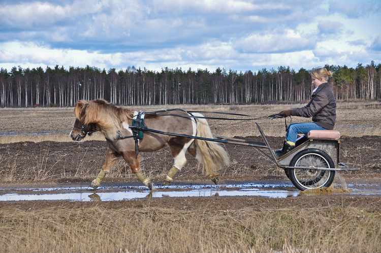 Peltokruisailun jälkeen jatkettiin Hannan ja Judin kanssa matkaa "maastoon". Aika säälittäväthän maastot on kaupungin keskustassa, mutta kun vähän matkaa jaksaa kävellä asfaltoitua pyörätietä tallilta pois päin ja ylittää yksi suurempi tie, niin pääsee aika kivoille koivuilla reunustetuille hiekkateille, jotka on tarkoitettu lenkkeilijöille ymym. Menimme siis sinne. Siellä oli tietenkin vielä lunta aika paljon, joten minulla meinasi hermot mennä lenkkareineni, kun lenkkari toisensa perään upposi lumeen niin, että täyttyi lumella ja sukka kastui.. No, ei auta valittaa. Matka jatkui hyvillä mielin ja kuvia otin aika paljon.. Hups. Kameran suljin varmaan tykkäsi :--D Maastoreissu kesti aika kauan, mutta Judilla riitti virtaa paljon ja hyvä niin. Takaisin tullessa Judi sai kävellä loppukäynnit. Tallilla hoideltiin poni huolella ja se sai jäädä pihattoon ihmettelemään.