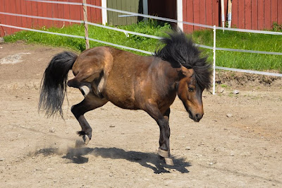 Olli oli hieno poni. Tullessaan maaliskuussa se oli aika takkuinen ja paksun karvansa ansiosta näytti vähän höpsöltä, mutta kesäkarvan koittaessa ja Olgan ahkeran liikutuksen tuloksena Ollista kuoriutui aivan upea shetlanninponiruuna. Hirveä ikävä jää kyllä tätä ponia. Luonteeltaan Olli oli hirmu kiltti ja kultainen poni. Alkutaipale ratsastuksessa oli aika monivaiheinen... Useilta tippumisilta ei selvitty ja maankamara tuli takuulla Olgalle ja myös vähän Noorallekin tutuksi Ollin vauhdikkaiden laukkapätkien tuloksena.